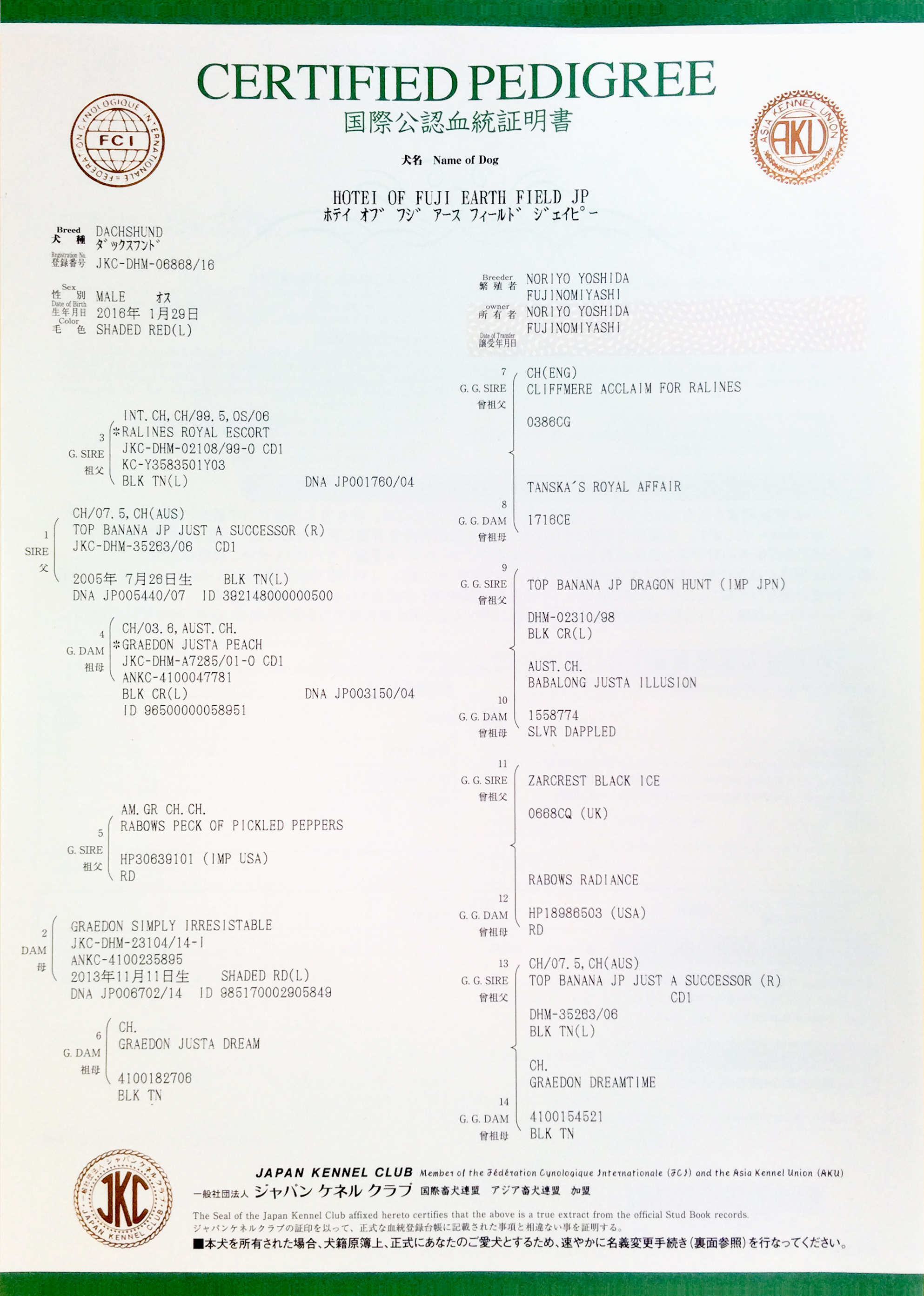 ダックスフンドのブリーダーのフジアースフィールドでは、ミニチュアダックス、カニンヘンの子犬の里親募集と交配を受け付けております。